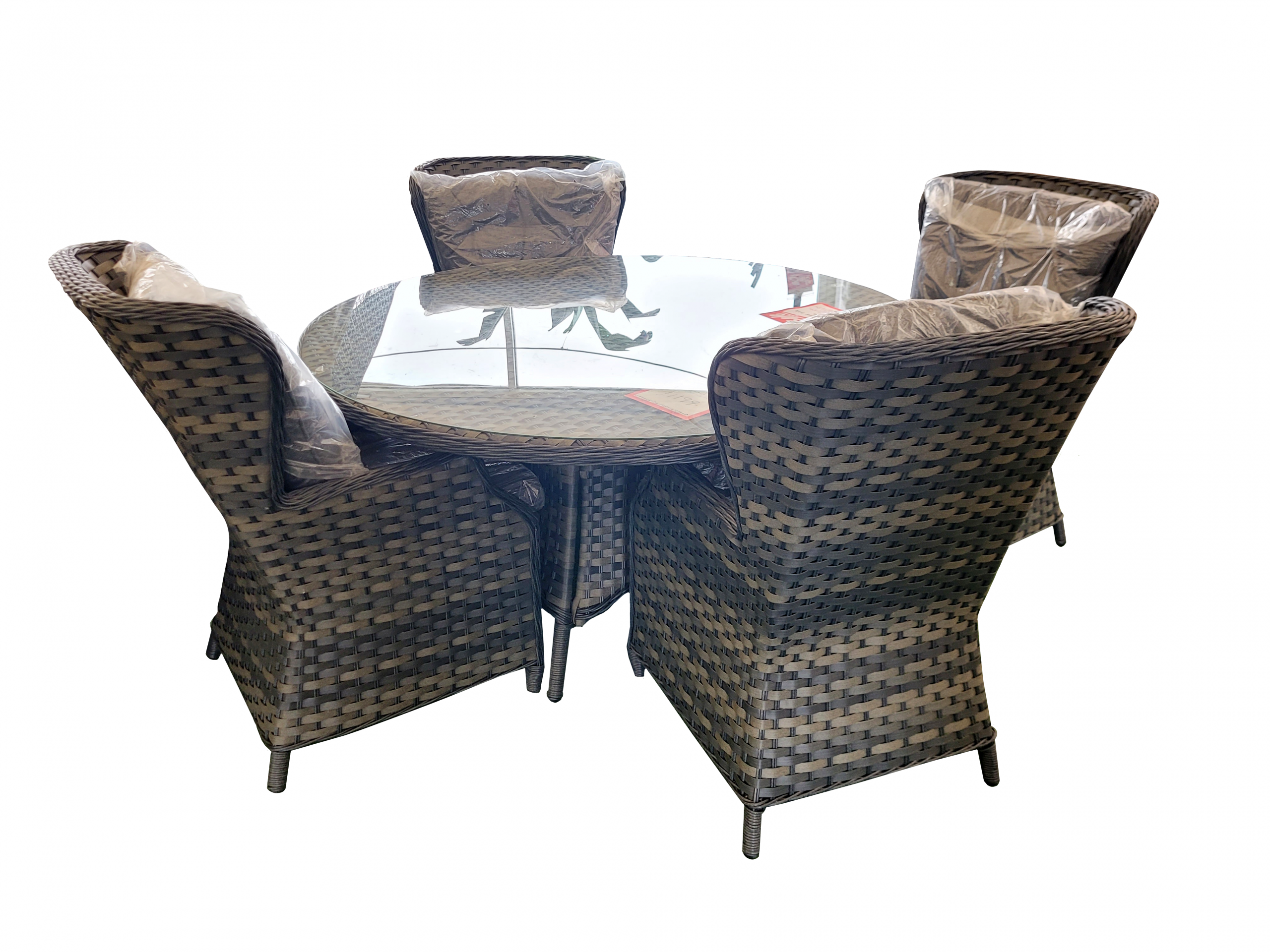 Thomas Round Table + 4 Chairs Grey Dining Set Outdoor Garden Furniture