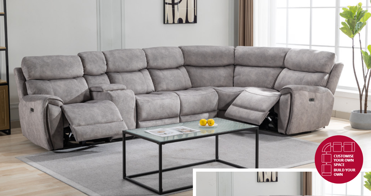 Phoenix Media Modular Grey Fabric Electric Recliner Corner Sofa | Exclusive