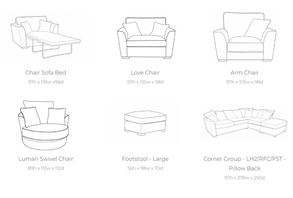 Corner Group LH2/RFC/FST Standard back, Corner Group RH2/LFC/FST Standard back, Corner Group L2S/RFC/FST Standard Back, Corner Group R2S/LFC/FST Standard Back, Corner Group LH2/COR/RH1 Standard Back, Corner Group LH1/COR/RH2 Standard Back, Corner Group L2S/COR/RH1 Standard Back, Corner Group LH1/COR/R2S Standard Back, Corner Group LH2/R2C Standard Back, Corner Group L2C/RH2 Standard Back, Corner Group LH2/COR/RH2 Standard Back, Corner Group LH1/COR/RH1 Standard Back, Armless Unit Standard Back, 4 Seater Modular Sofa Standard Back, 311 (3 Seater+2 Chairs) Standard Back, 211 (2 Seater+2 Chairs) Standard Back, 3+2 (3 Seater+2 Seater Standard Back, 3 Seater Sofa Standard Back, 2 Seater Standard Back, Chair Standard Back, 3 Seater Sofa Bed, 2 Seater Sofa Bed, Chair Sofa Bed, Love Chair, Arm Chair, Luman Swivel Chair, Footstool, Corner Group LH2/RFC/FST Pillow back, Corner Group RH2/LFC/FST Pillow back, Corner Group L2S/RFC/FST Pillow Back, Corner Group R2S/LFC/FST Pillow Back, Corner Group LH2/COR/RH1 Pillow Back, Corner Group LH1/COR/RH2 Pillow Back, Corner Group L2S/COR/RH1 Pillow Back, Corner Group LH1/COR/R2S Pillow Back, Corner Group LH2/R2C Pillow Back, Corner Group L2C/RH2 Pillow Back, Corner Group LH2/COR/RH2 Pillow Back, Corner Group LH1/COR/RH1 Pillow Back, 4 Seater Modular Sofa Pillow Back, 3 Seater Sofa Pillow Back, 2 Seater Sofa Pillow Back, 311 (3 Seater+2 Chairs) Pillow Back, 211 (2 Seater+2 Chairs) Pillow Back, 3+2 (3 Seater+2 Seater Sofa Pillow Back, 3 Seater Sofa Pillow Back, 2 Seater Pillow Back, Chair Pillow Back, 3 Seater Sofa Bed, 2 Seater Sofa Bed, Chair Sofa Bed