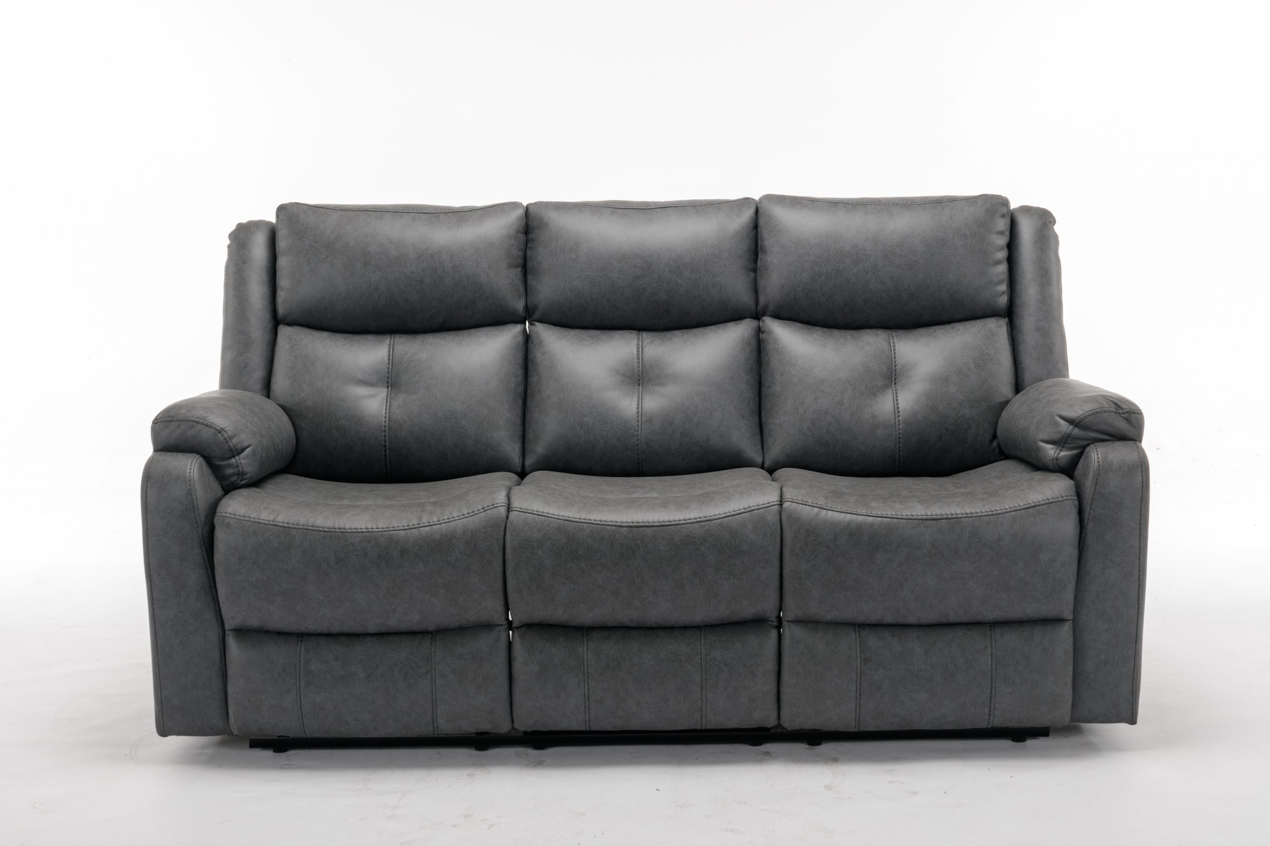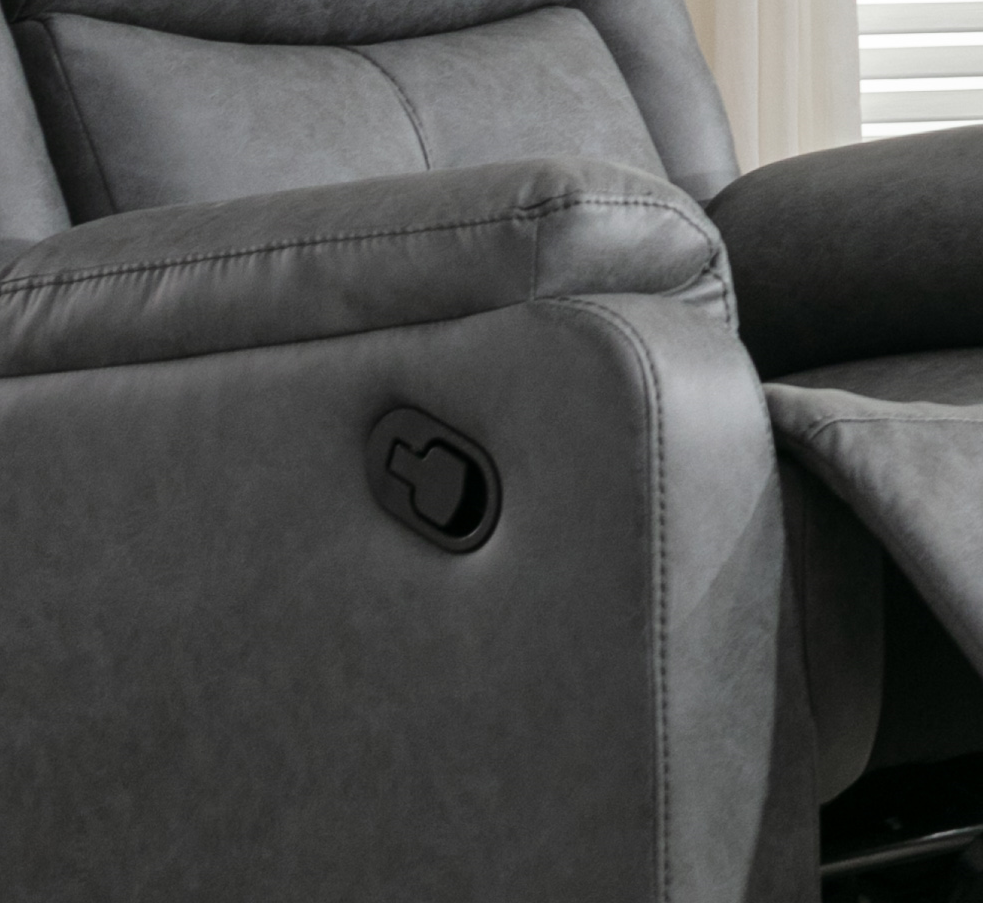 The Belair grey fabric manual recliner sofa collection offers elegant looks and supreme comfort at an extremely affordable cost. The hardwearing cadet grey fabric the suite is upholstered in has a suede-like feel, offering a super cosy sit perfect for snuggling up on.