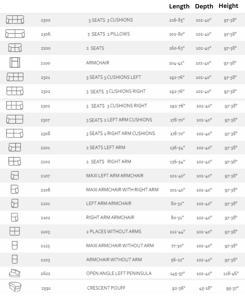 - Pocket sprung seats-Scroll arm