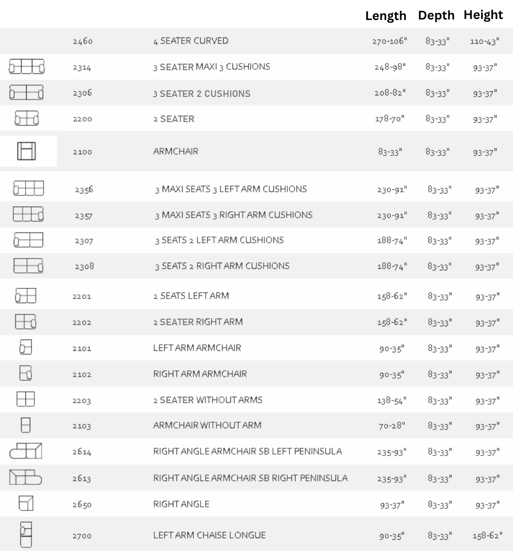 This sofa is available as a modular sofa, in leather or fabric, electric recliner ( +£300 per seat ) and MAXI options ( larger than standard ). Please contact us for more details.