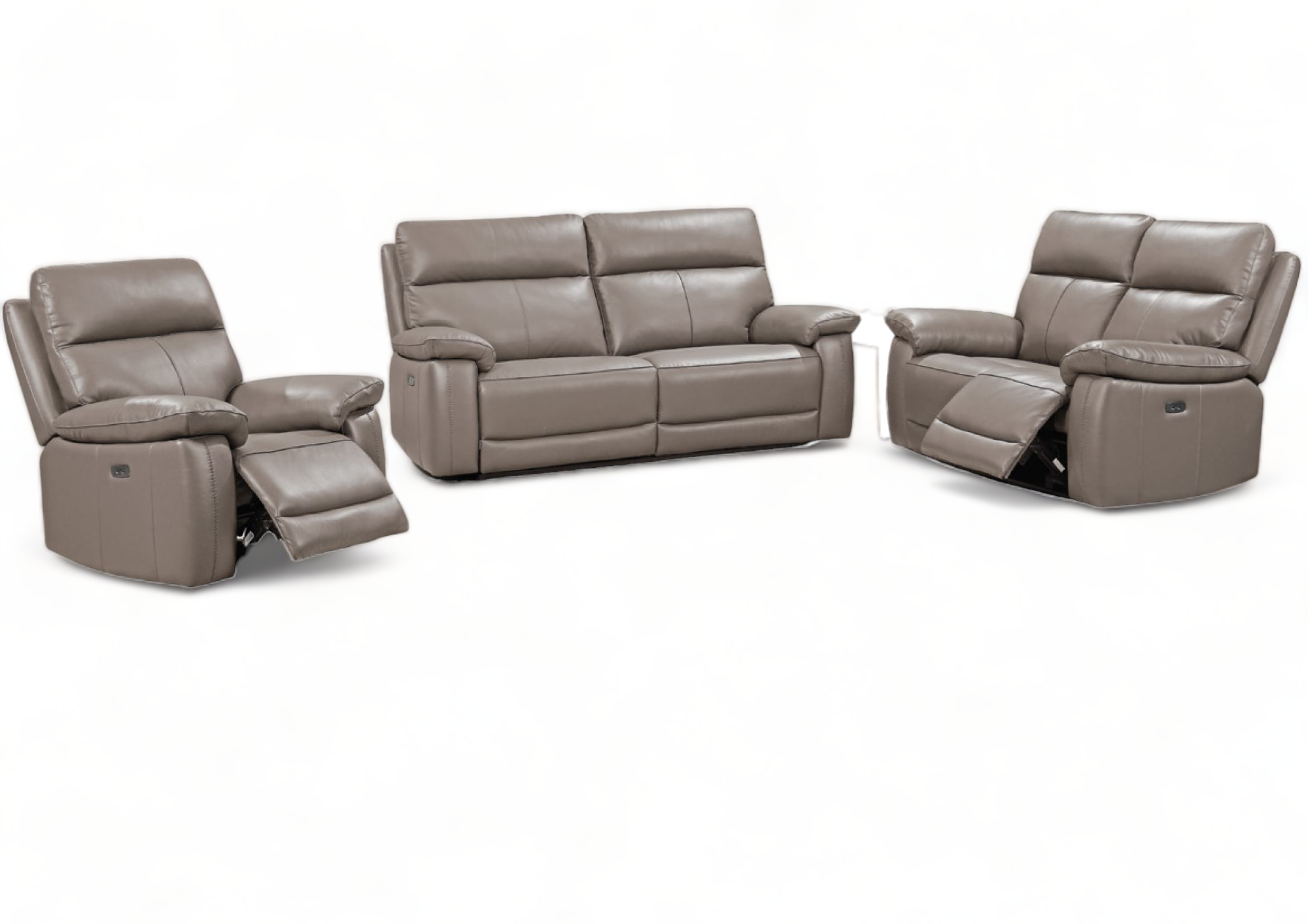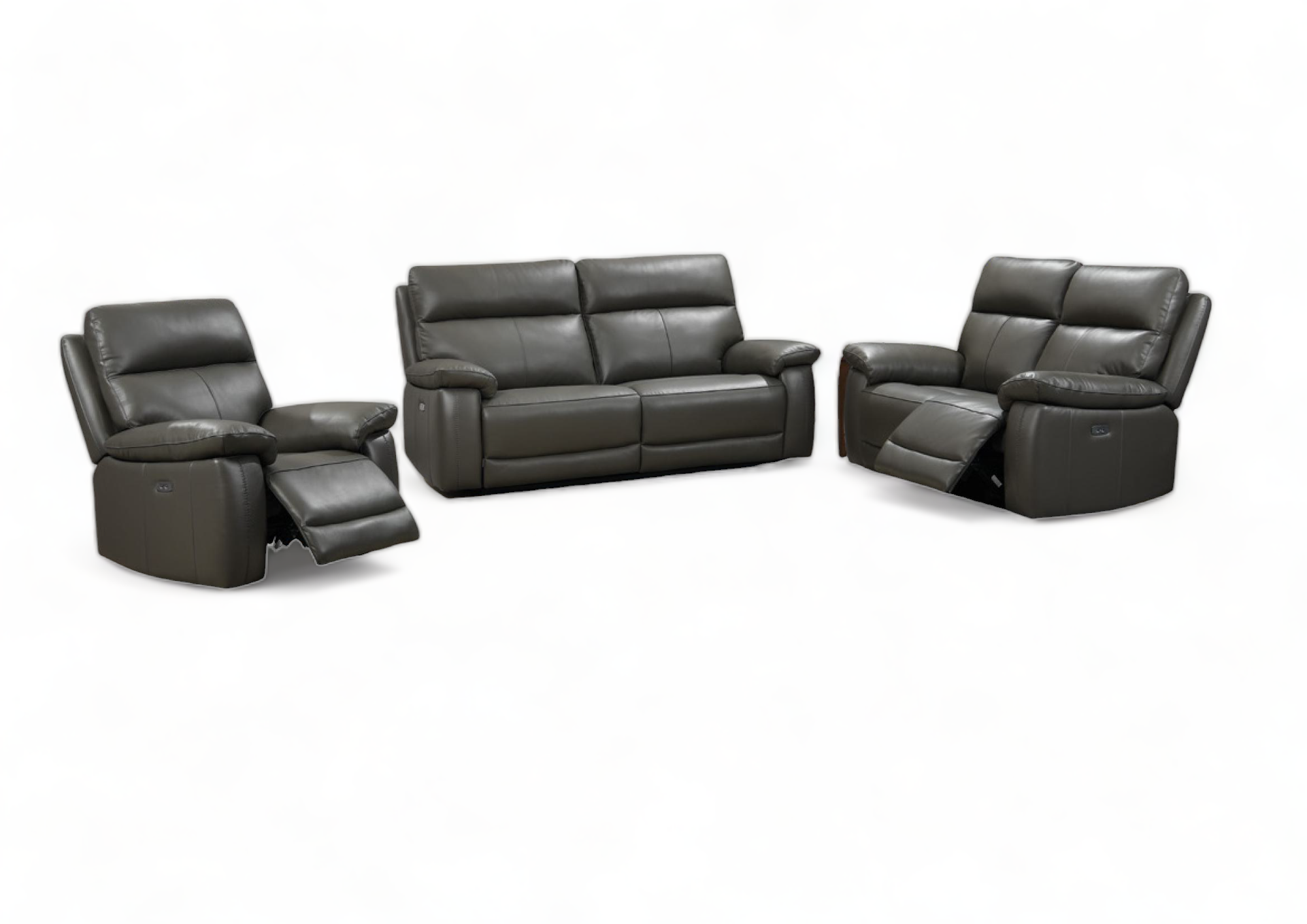 The Brooklyn leather sofa collection featuring electric recliners and built-in USB ports, this set combines beautiful real leather with contrast stitching and a neutral colour palette for a real crowd-pleaser. Luxurious padded headrests provide excellent support, while detailed cross stitching adds a real elegance to the overall suite. Relax in style with convenient USB ports to charge your phone straight from your seat.