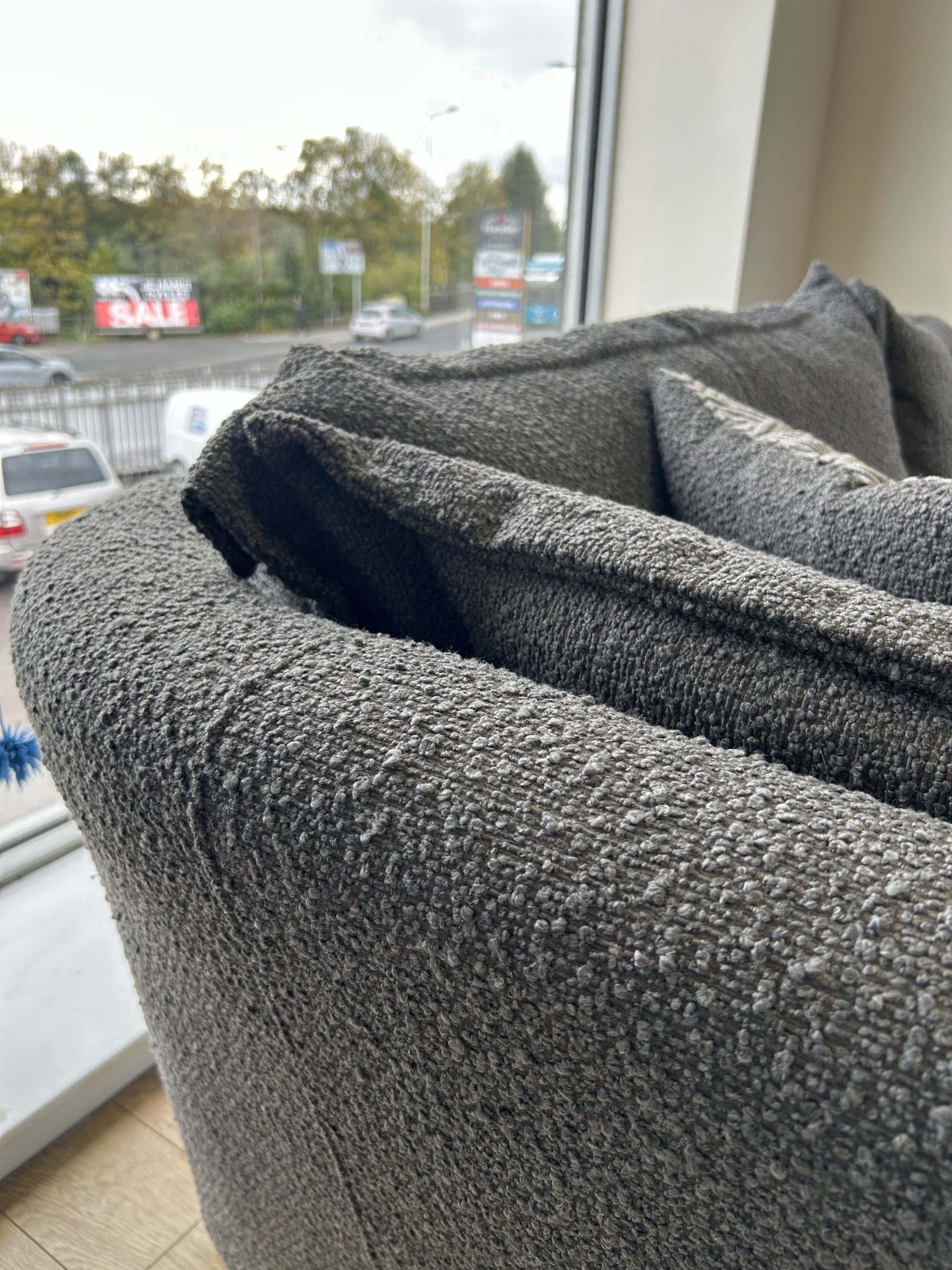 Upgrade your living space with the Ex-Display Sully Fabric 4 Seater Sofa and Love Chair. Designed for relaxed, everyday comfort, this set features deep seats, soft textured fabric, and generously padded back cushions. The modern, curved arms add a stylish touch while the spacious 4 seater offers plenty of room for family and guests. A great choice if you’re looking for a large sofa with a matching love chair that fits beautifully into a modern living room and offers great value too.