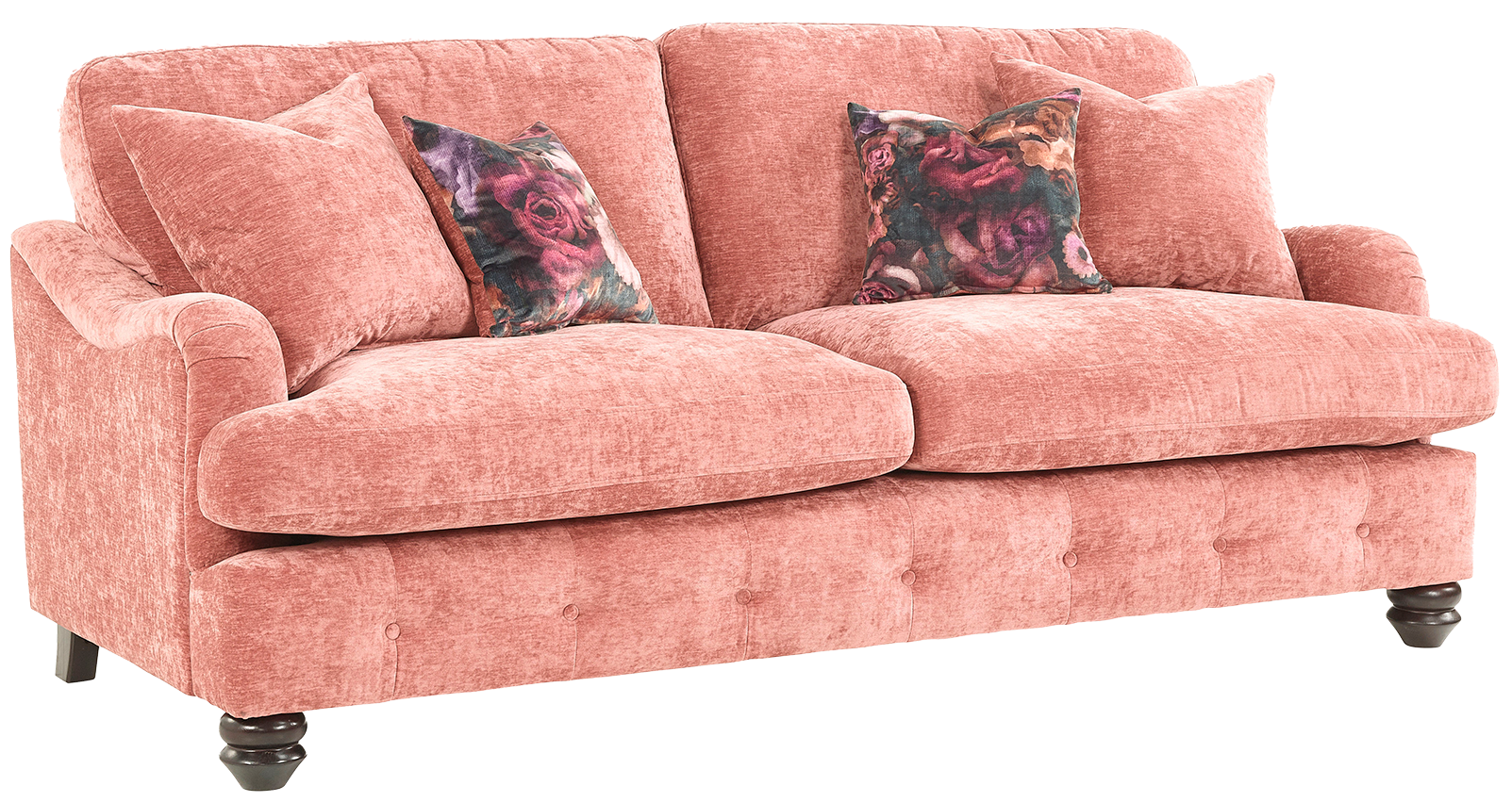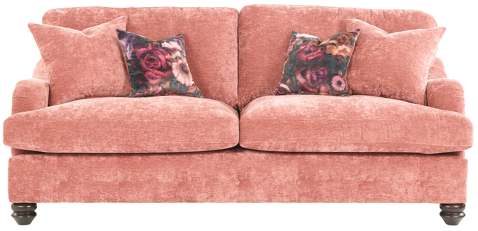 Adding a touch of vibrance and personality, the Millie Sofa comes with striking floral accent cushions that beautifully contrast against the darker tones of the upholstery. This thoughtful design element creates a dynamic visual appeal and adds a playful pop of colour to your living space.