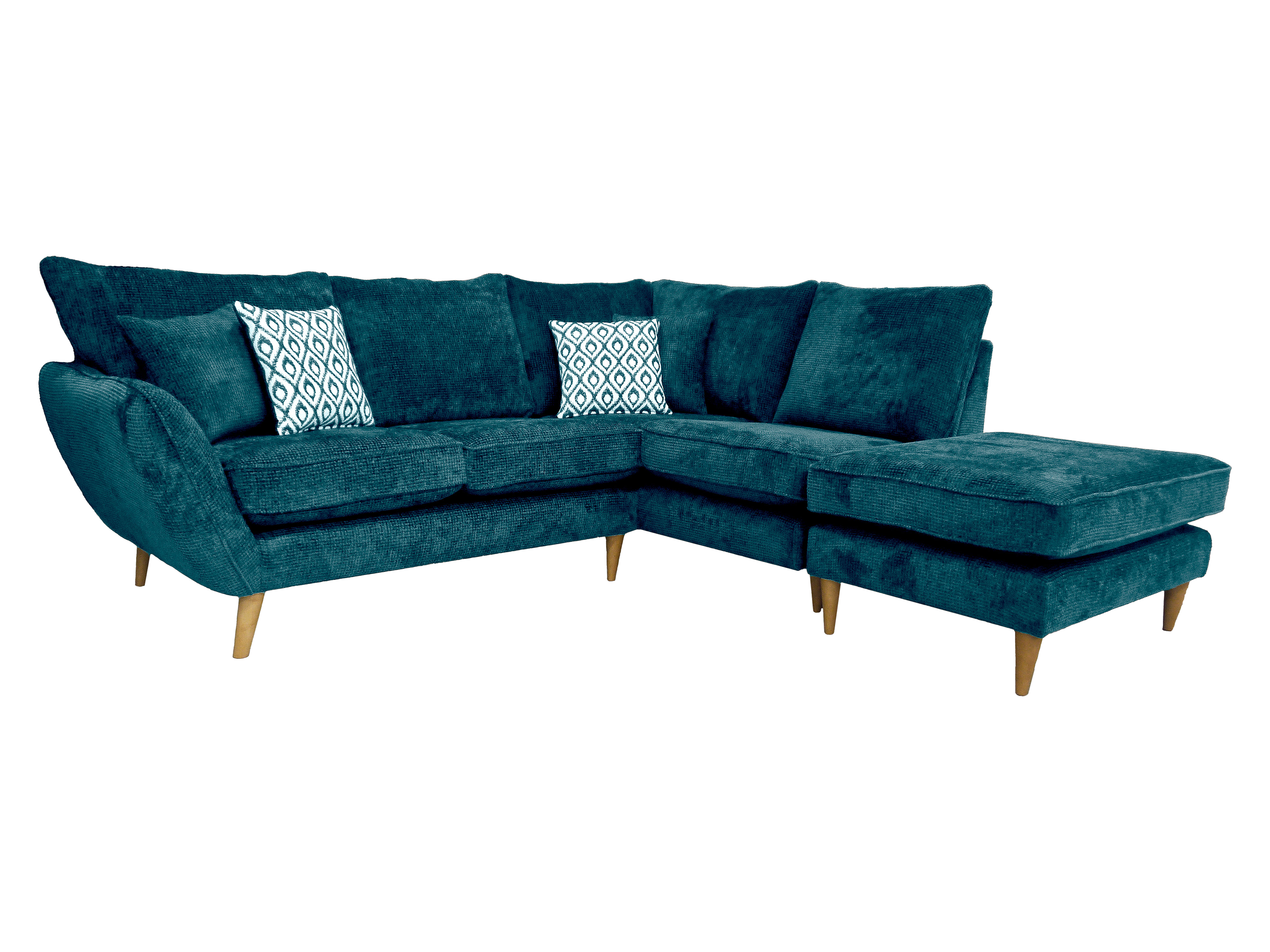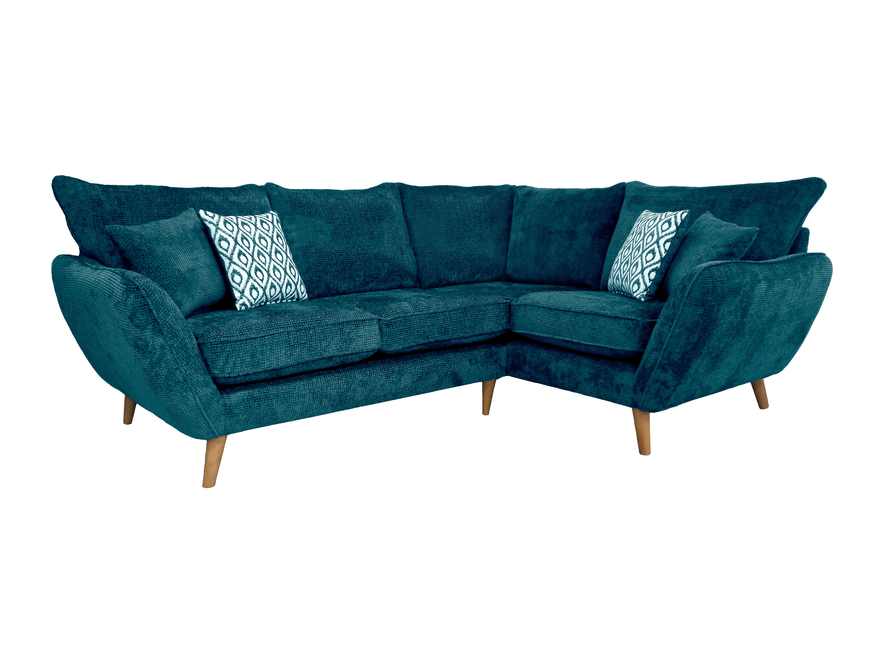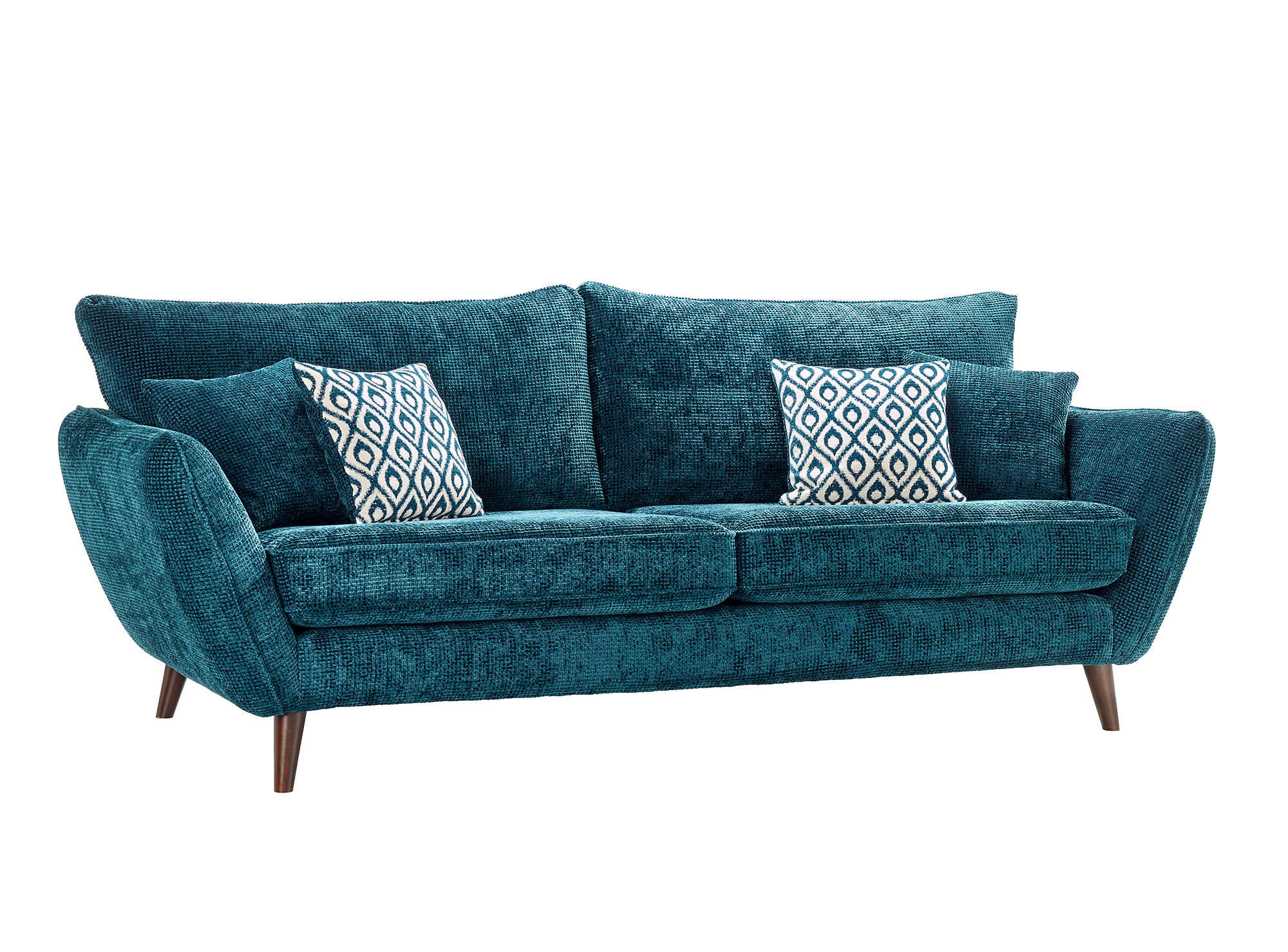 The Perth Fabric sofa is a modern, scandi inspired piece that oozes style. Simple but eye-catching angled arms featuring centred piping adds character to the model. This model comes in a comfortable high back with bold velvet accent cushions.