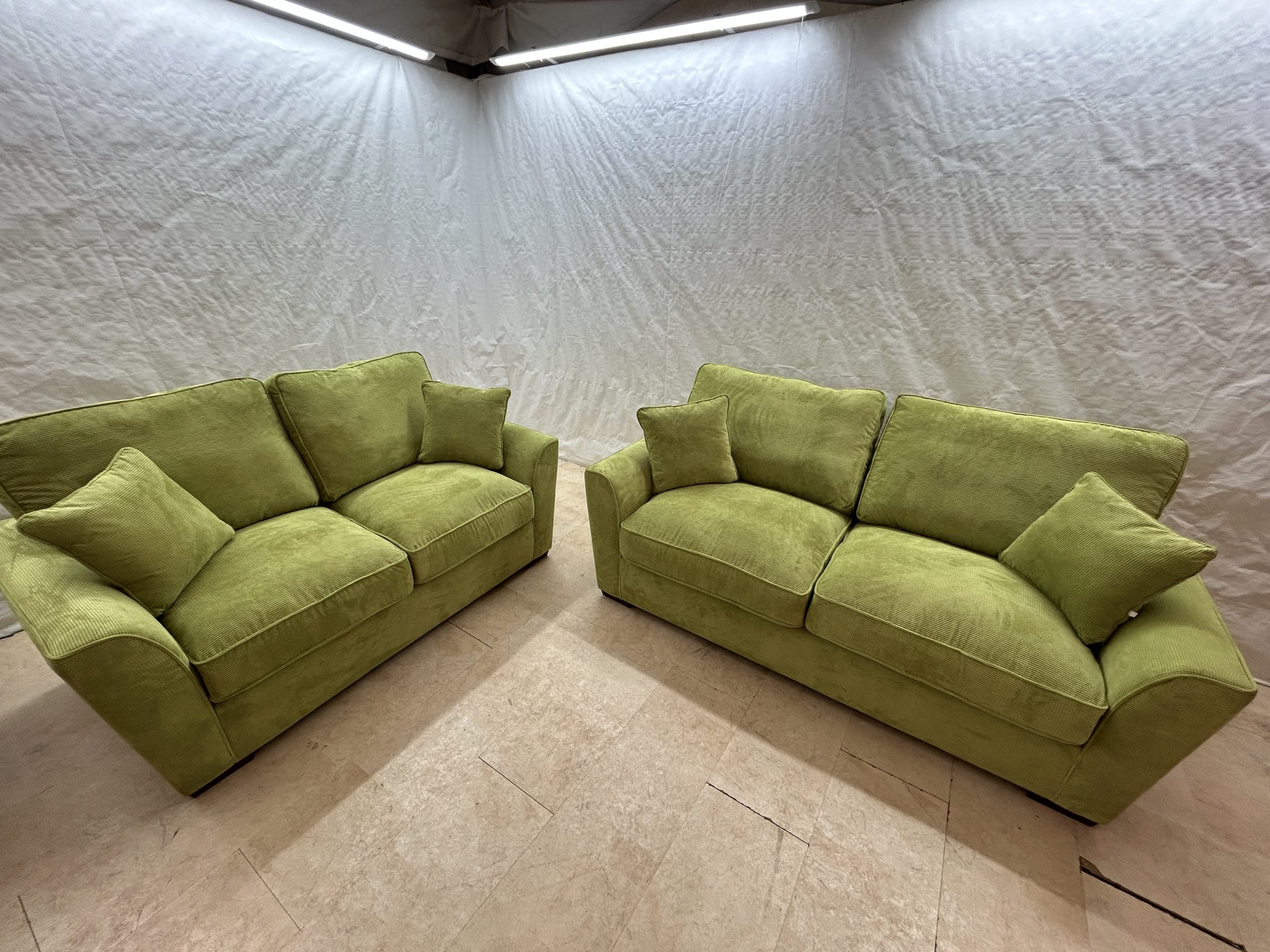 Brand new to our ex-display collection is the beautifully vibrant Fantasy Apple 3 + 2 seater sofa set. A true statement piece for any living room, this bright and cheerful duo is upholstered in a premium quality plush fabric with super comfy cushions for a truly relaxing sit. Crafted by one of the leading sofa companies in the UK, this sofa set is sure to please.