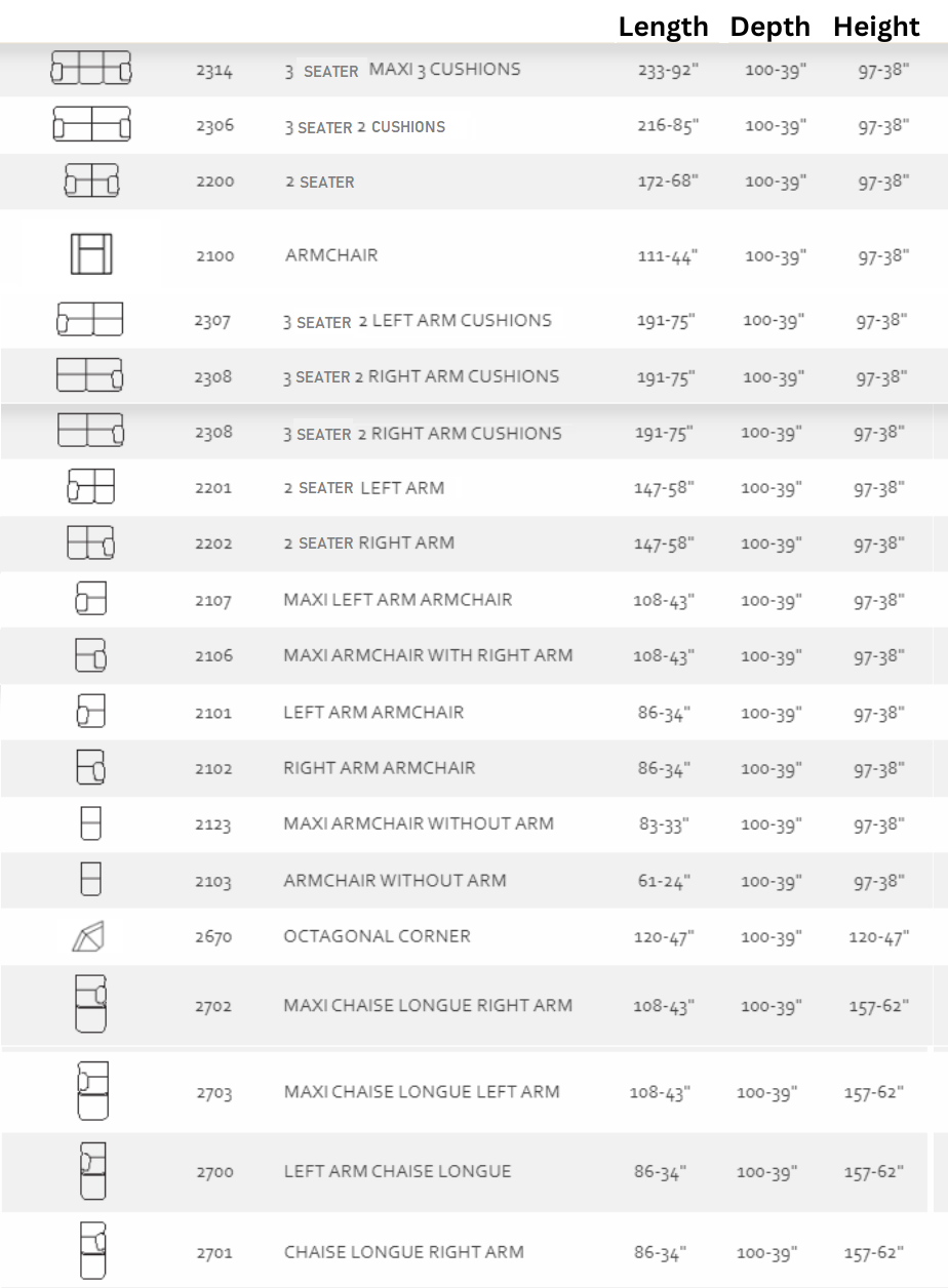 This sofa is available in leather or fabric, electric recliner ( +£300 per seat ) and MAXI options ( larger than standard ). Please contact us for more details.