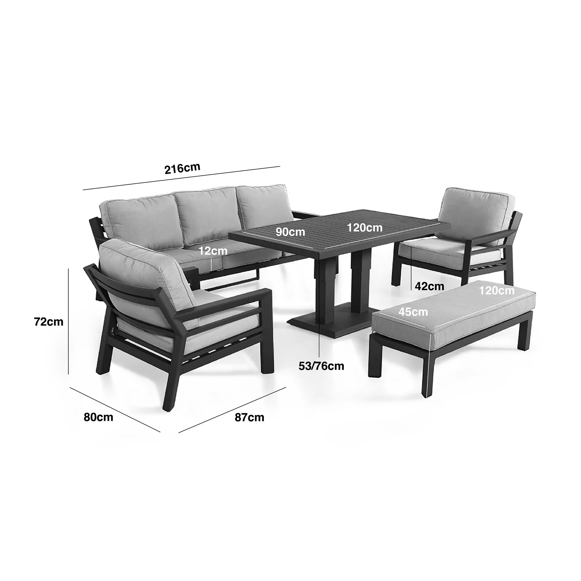 The Homeflair New York 6 Seat Round Dining set is crafted with maintenance-free grey aluminium and offers luxurious padded seating with showerproof cushions for maximum comfort. The set is finished with a contemporary round dining table which will effortlessly transform your outdoor living space.