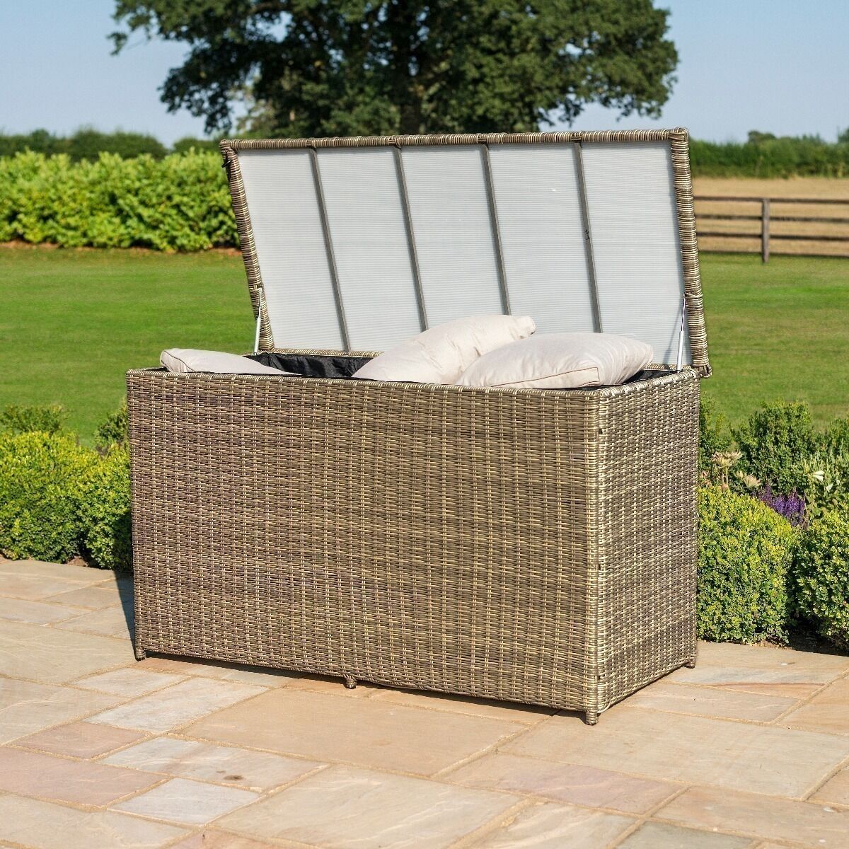 We do, however, advise that during prolonged periods of non-use or poor weather that the cushions are stored indoors. For extra protection we do recommend using a storage box cover to protect contents.