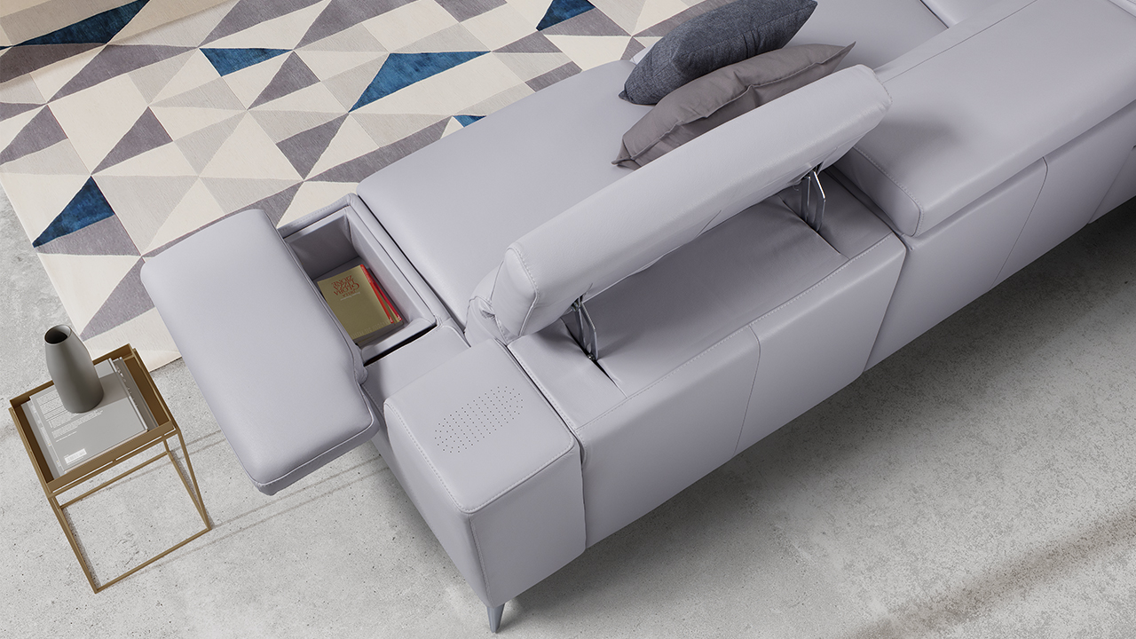 The Hypnose Leather Sofa from Newtrend Concepts Italia features full genuine leather upholstery with spring-encased-in-foam seat cushions to prevent sagging and an extremely solid hardwood frame. Featuring fold-down headrests for better head and neck support, the Hypnose provides excellent comfort whilst exuding elegance of the highest degree.