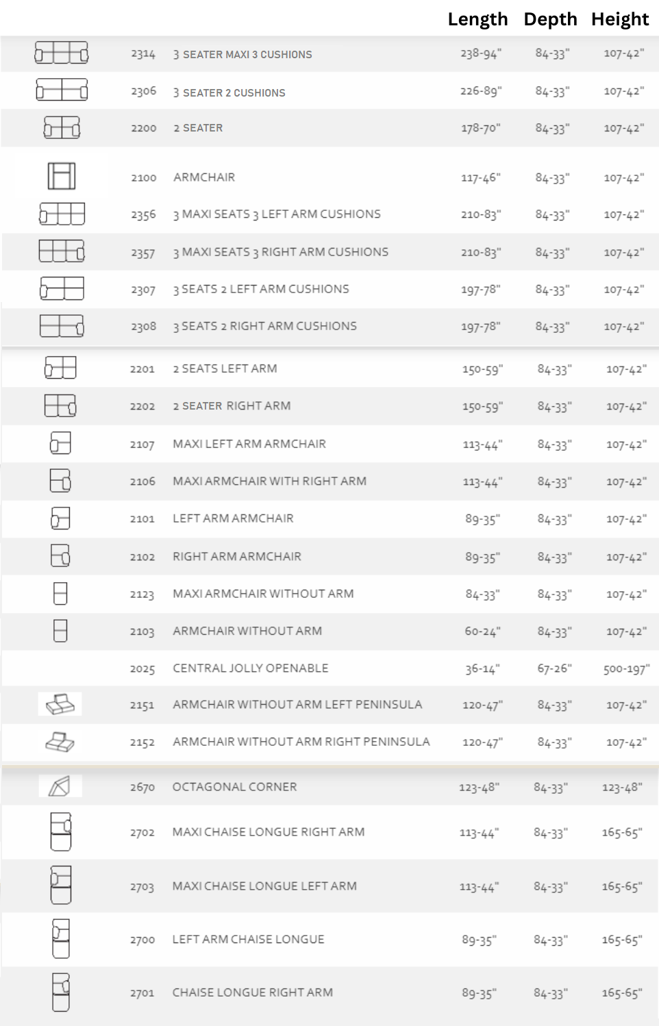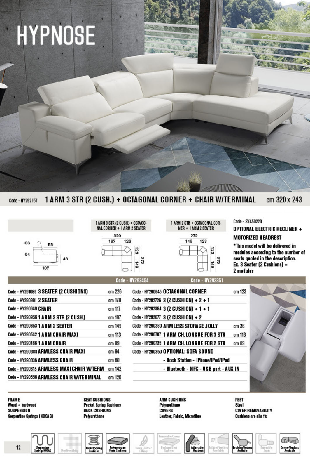 This sofa is available as a modular sofa, in leather or fabric, electric recliner ( +£300 per seat ) and MAXI options ( larger than standard ). Please contact us for more details.