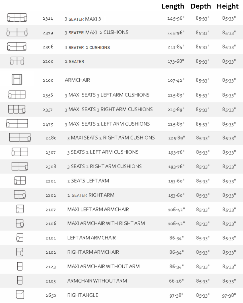 - Seat and back cushions in goose down, completely removable covers.