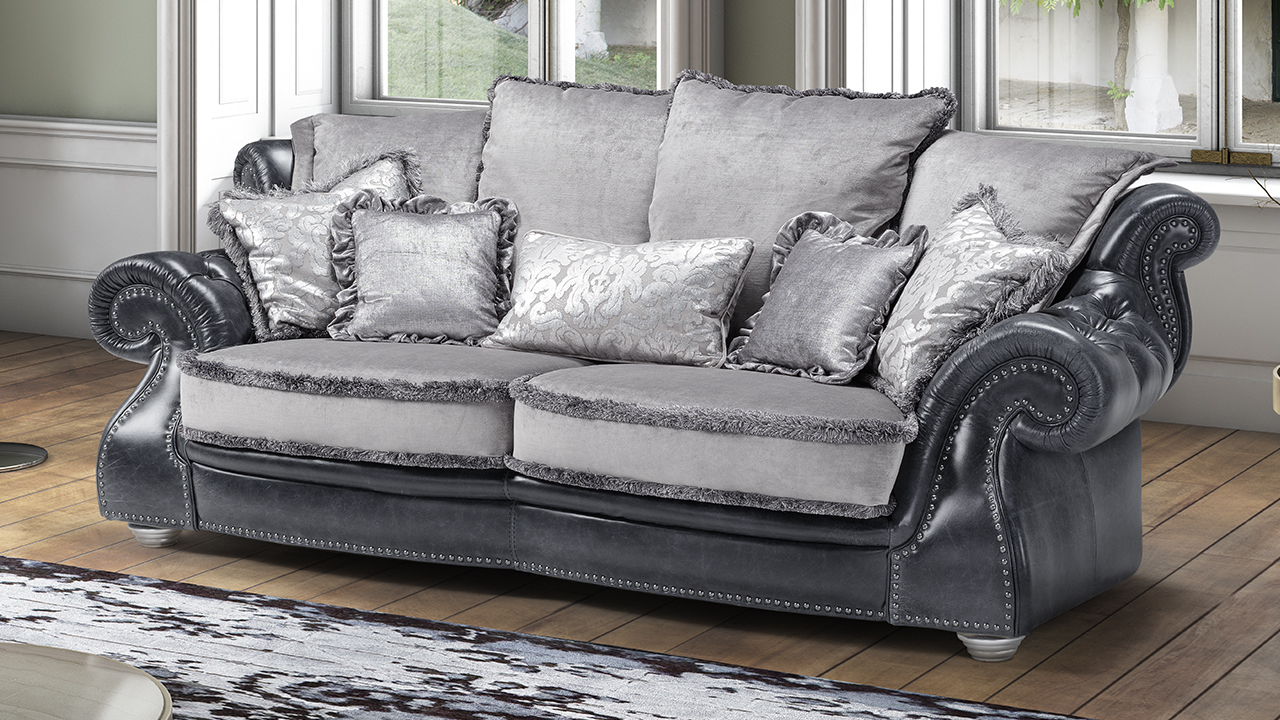 This sofa is available in leather or fabric ( +£300 per seat ) and MAXI options ( larger than standard ). Please contact us for more details.
