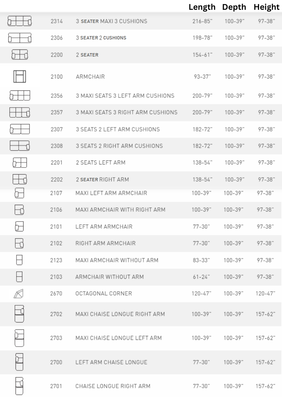 This sofa is available as a modular sofa, in leather or fabric, electric recliner ( +£300 per seat ) and MAXI options ( larger than standard ). Please contact us for more details.