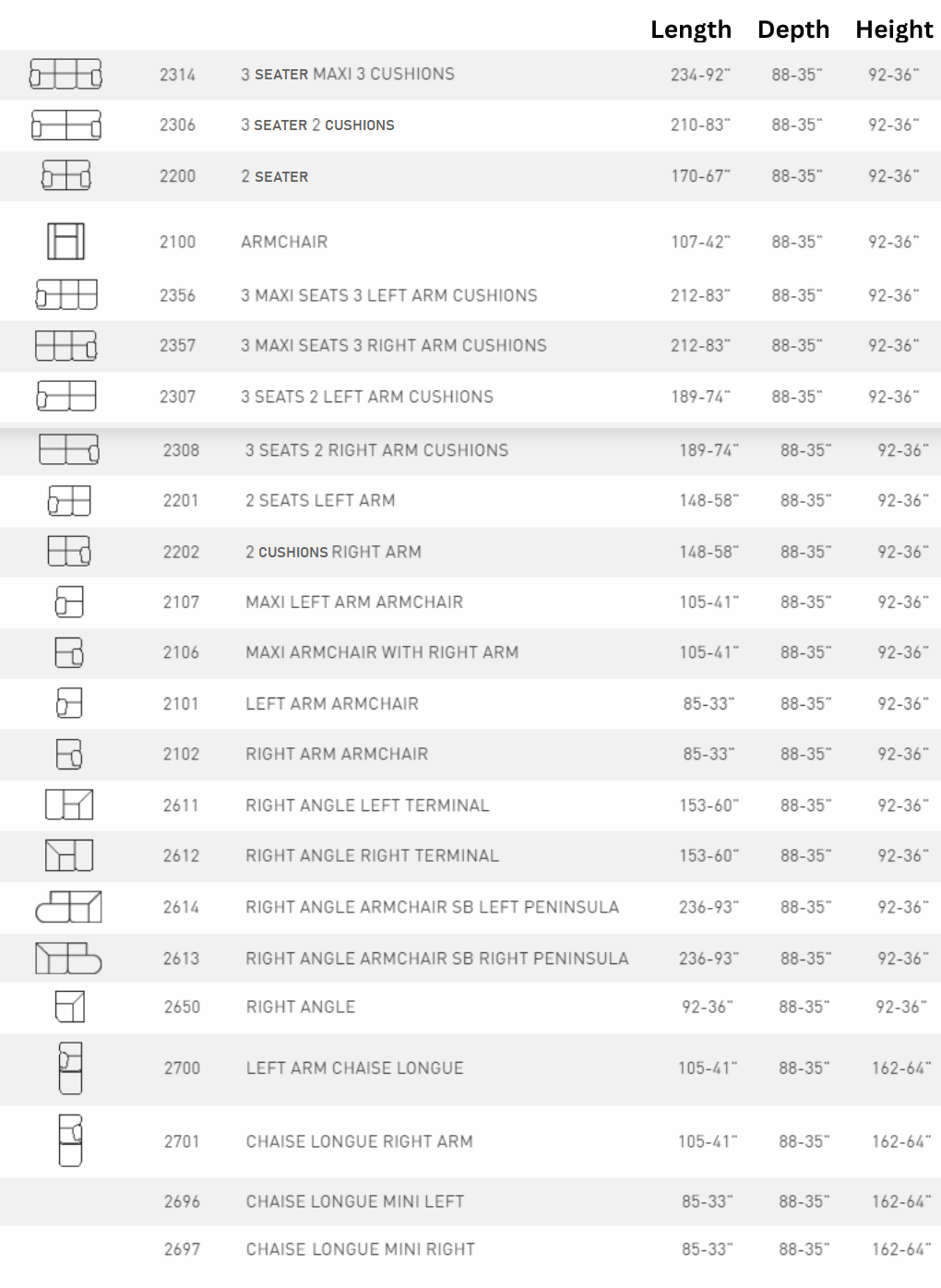 - Fixed cushions/non-removable