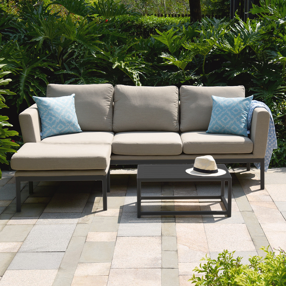 The Pulse Sofa emulates intimacy and with practicality at the heart of the design, this outdoor chaise sofa is set to become a highly popular set. Included is a chaise that can sit on either side of the sofa making a functional chaise lounge and due to the compact design, this sofa can easily be placed in any outdoor setting. The set has been designed to be a great set for space saving, each section stacks onto each other meaning it can easily tuck away during the winter months in the corner of your garden.
