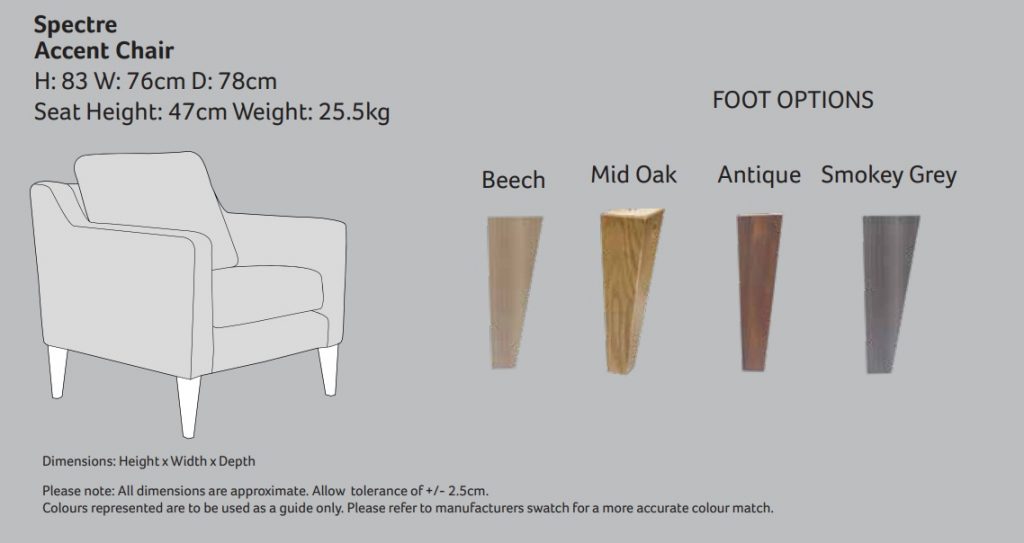 | Foot Options | Beech, Mid Oak, Antique, Smokey Grey |