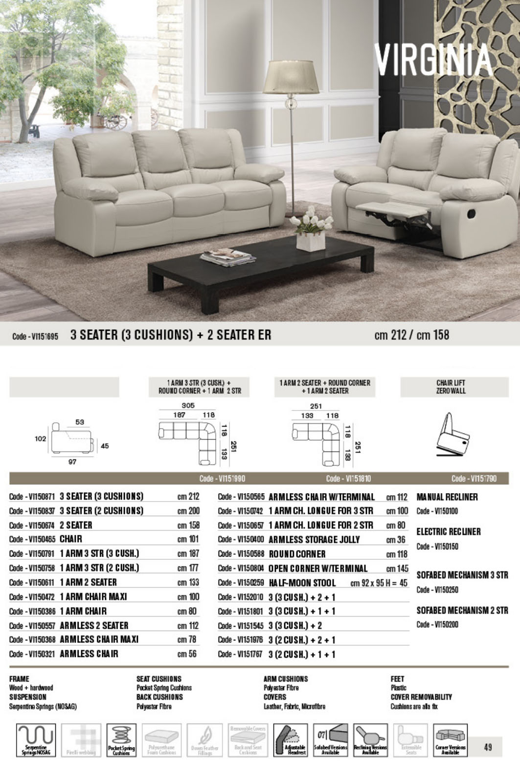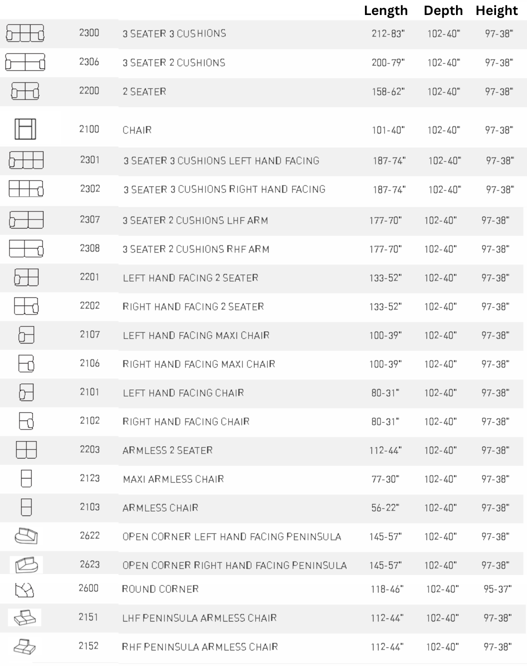 - Fixed cushions/non-removable