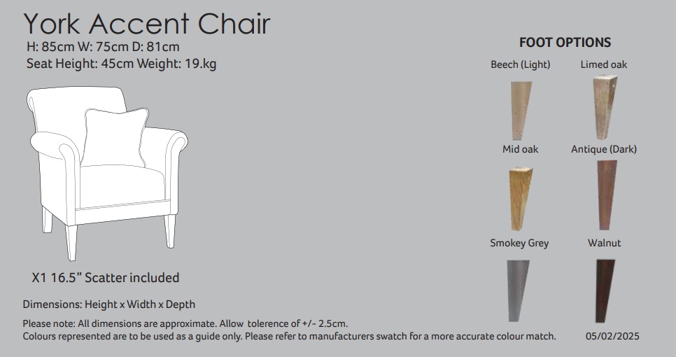 | Foot Options | Antique, Light Beech, Limed Oak, Mid Oak, Smokey Grey |