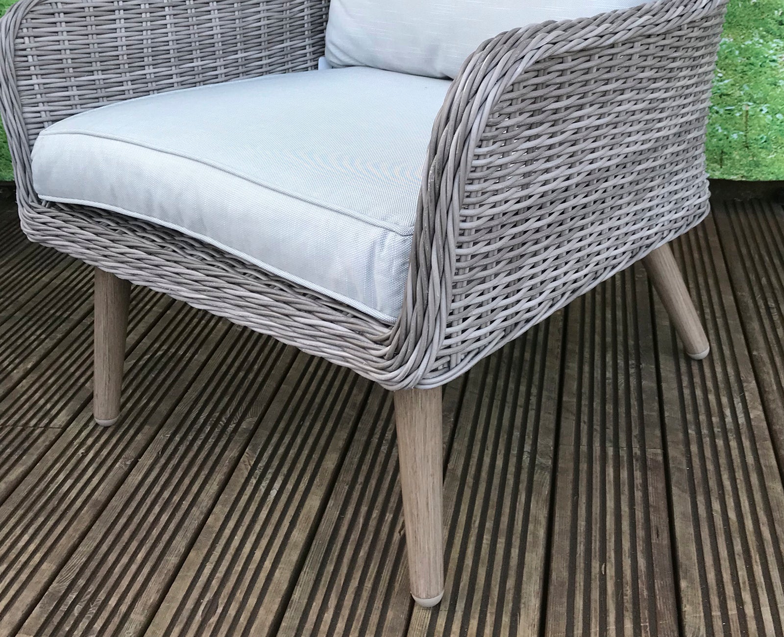 ● Comfortable Cushions – Pale grey, foam-padded for maximum comfort with removable, showerproof covers.