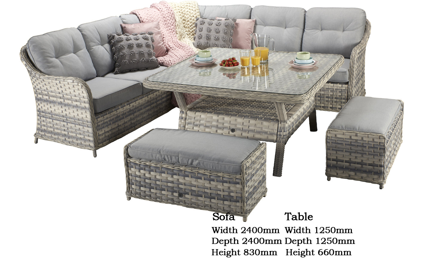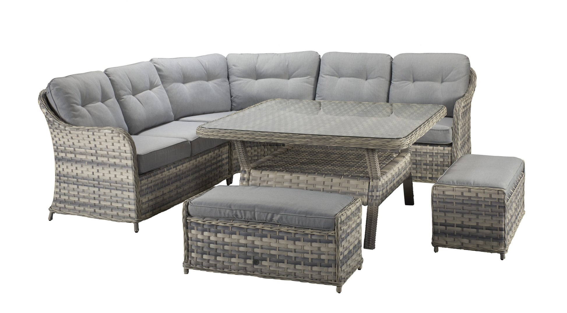 Constance Rattan Large Corner Dining Sofa with Benches in Grey