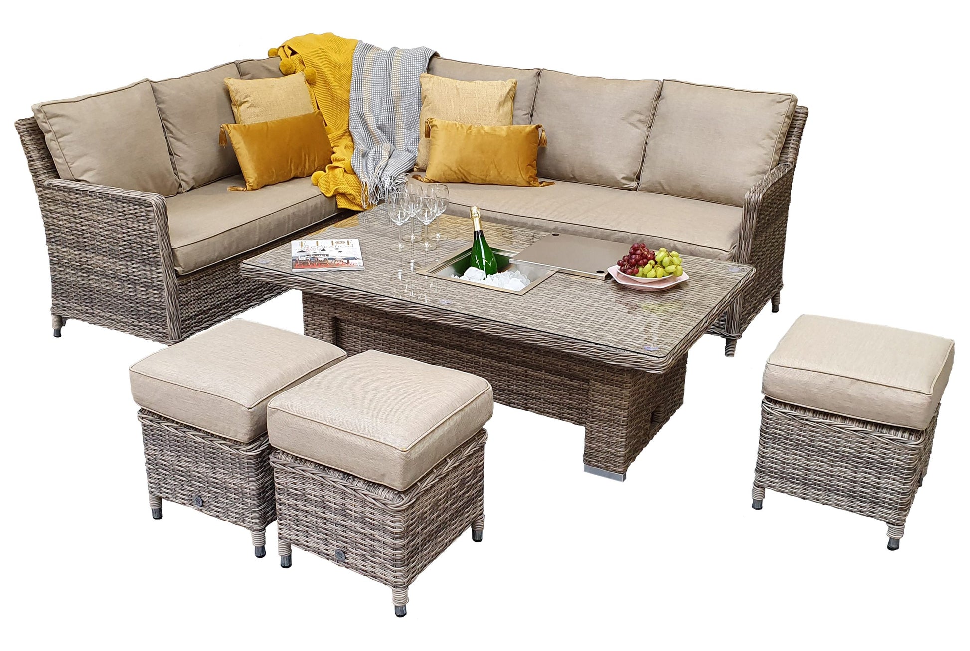 Edwina Rattan Corner Dining Set with Lift Table and Ice Bucket