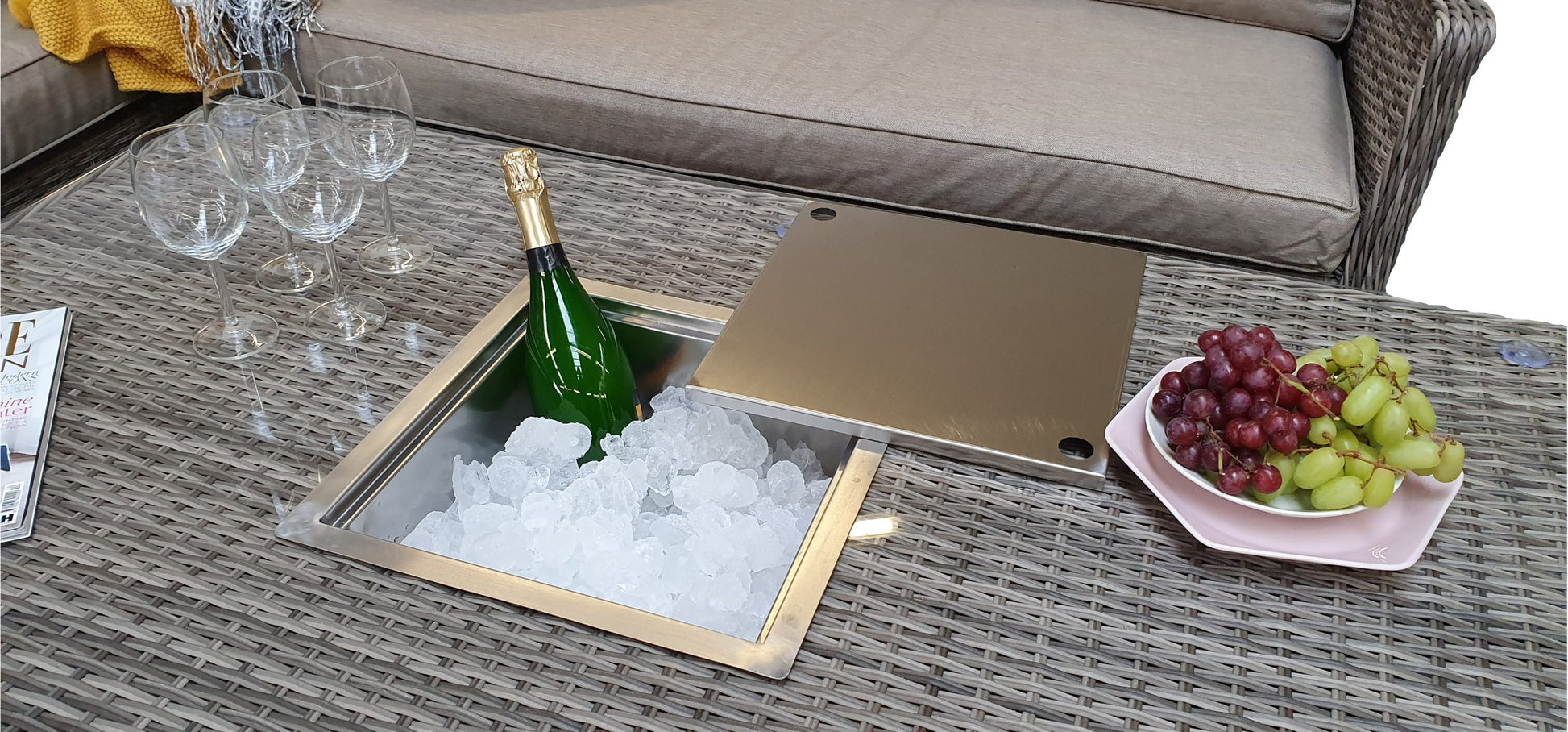 Absolutely! The centre of the table features a built-in ice bucket to keep your drinks chilled and within reach during gatherings.