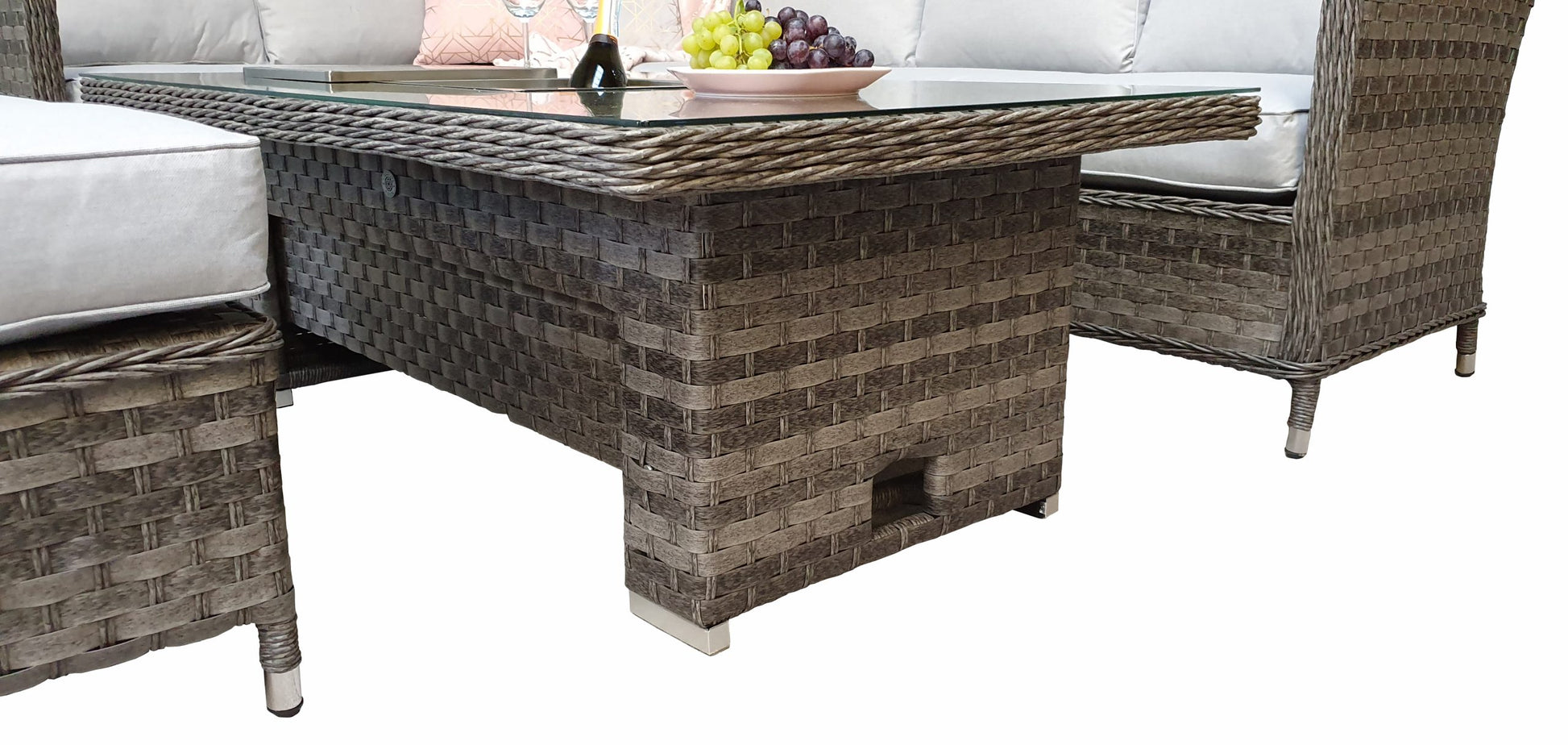 Whether you’re hosting summer BBQs or enjoying cool evening chats with friends, the lift table adjusts easily from coffee table height to dining table height — making it perfect for both casual lounging and formal meals. The integrated ice bucket keeps beverages chilled and close at hand, adding a touch of luxury to every occasion.