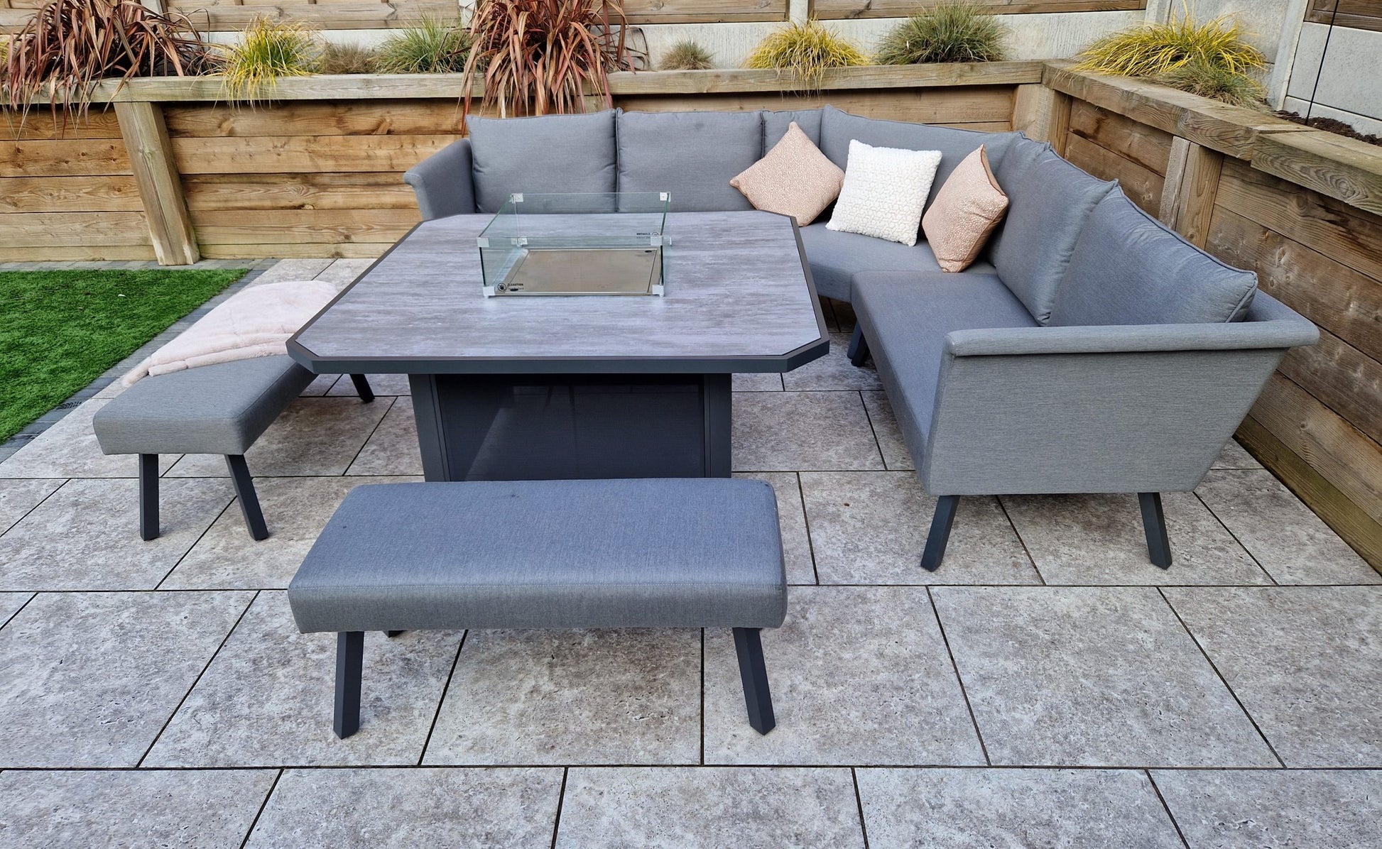 Turn your garden into a luxury retreat with the Luna L Shape Fabric Corner Sofa with Firepit Table, designed to combine comfort, style, and warmth in one standout outdoor set. With its unique all-fabric L-shaped design and built-in firepit table, the Luna is perfect for creating a cosy atmosphere while hosting family and friends all year round.